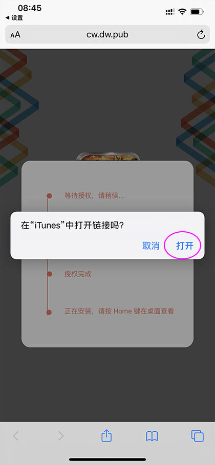 在"iTunes"中打开链接吗?选择“打开”,如图: